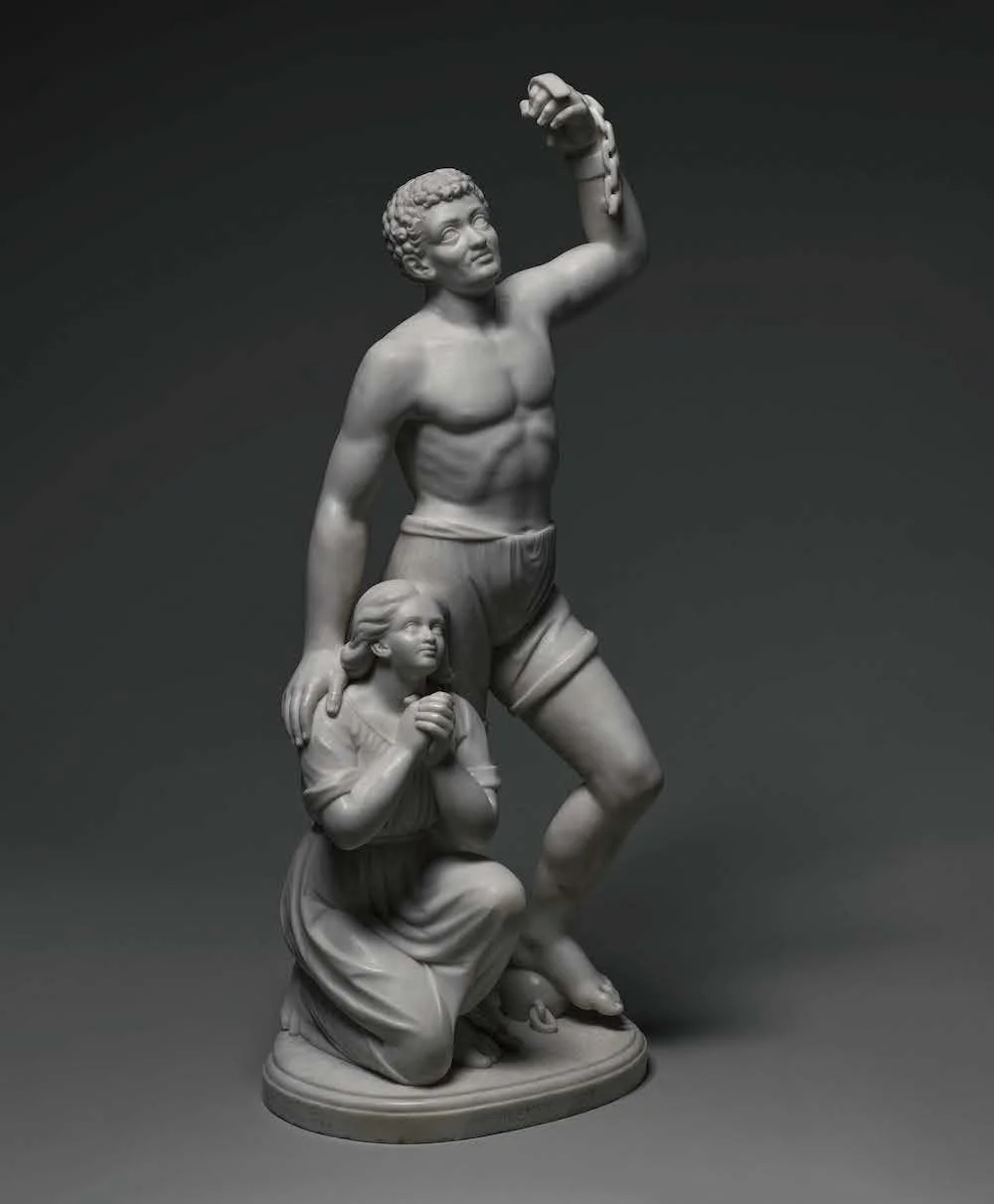 Edmonia Lewis (Mississaugas of the Credit First Nation descent, American, 1844–1907), Forever Free, 1866–67. Marble, 41 3/4 x 22 1/2 x 12 3/8 in. Howard University Gallery of Art Collection, Washington, DC 67.9.S. Photo: Greg Staley